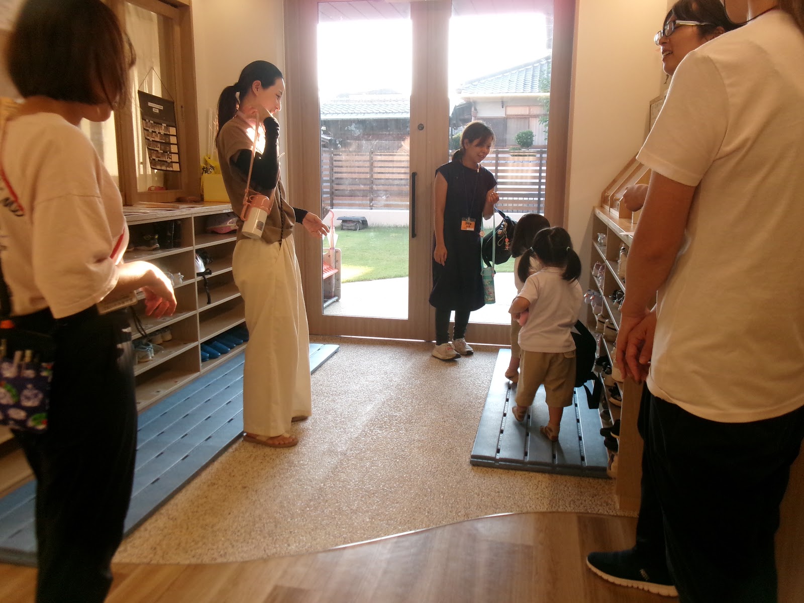 今回は地震が発生した想定で、防災頭巾を被って玄関ホールに避難し、1階の保育室や玄関ホールで保護者の方のお迎えが来るのを待ちました。